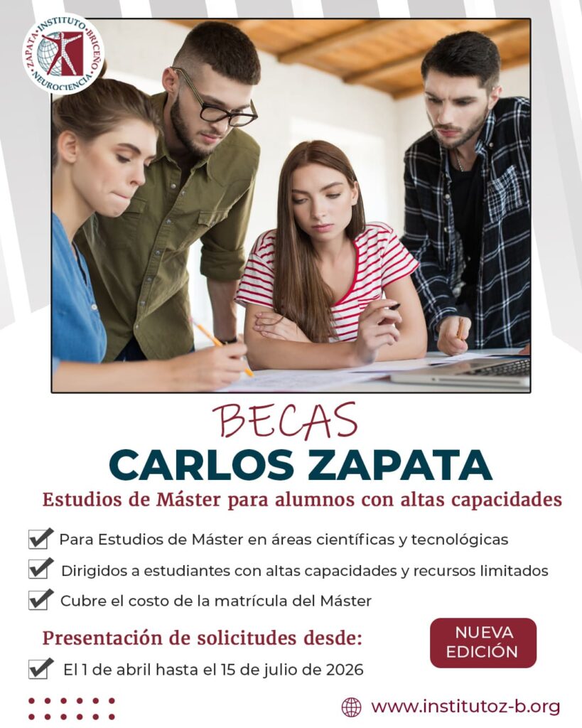 El Instituto Zapata-Briceño de Neurociencia ha anunciado la convocatoria de las Becas Carlos Zapata de Estudios de Máster, una iniciativa destinada a apoyar a estudiantes con altas capacidades intelectuales que deseen continuar su formación académica en programas de posgrado.
